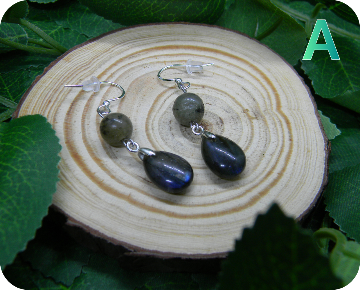 - Perles labradorite 8 mm + pierres gouttes